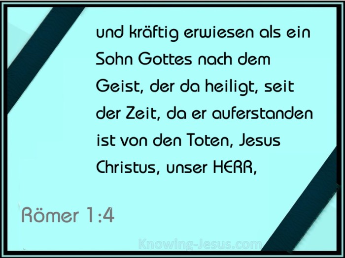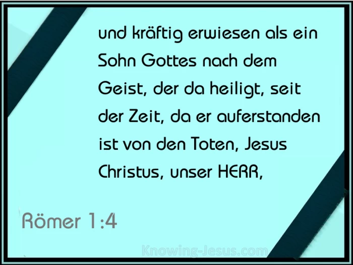 und kräftig erwiesen als ein Sohn Gottes nach dem Geist, der da heiligt, seit der Zeit, da er auferstanden ist von den Toten, Jesus Christus, unser HERR, durch welchen wir haben empfangen Gnade und Apostelamt, unter allen Heiden den Gehorsam des Glaubens aufzurichten unter seinem Namen,