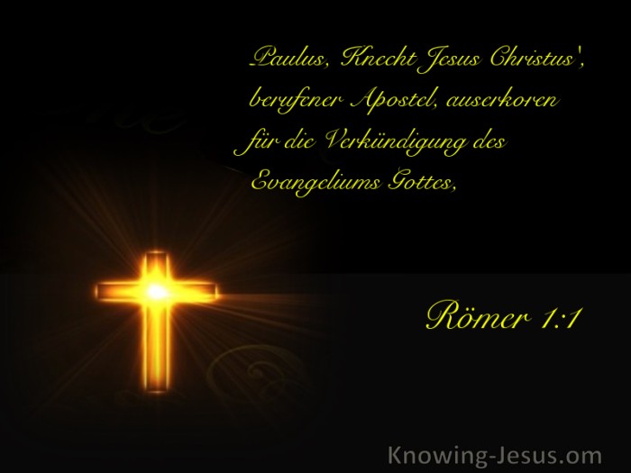 Paulus, Knecht Jesus Christus', berufener Apostel, auserkoren für die Verkündigung des Evangeliums Gottes,
