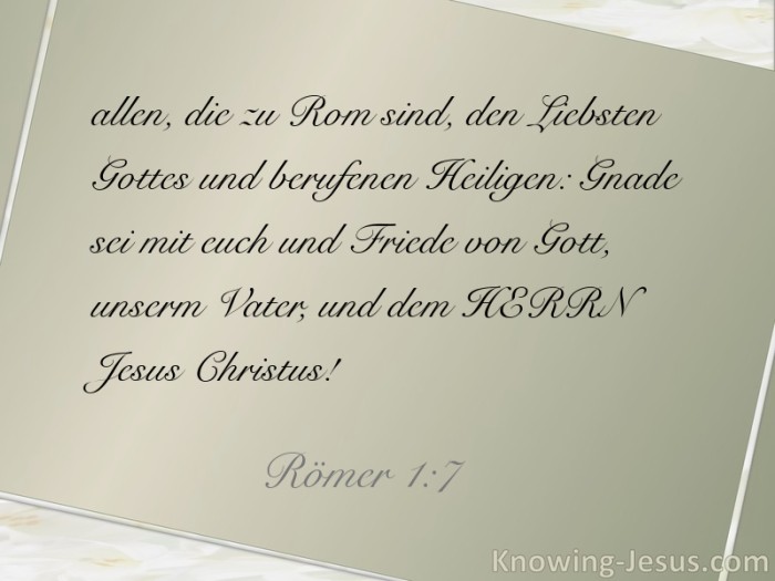 allen, die zu Rom sind, den Liebsten Gottes und berufenen Heiligen: Gnade sei mit euch und Friede von Gott, unserm Vater, und dem HERRN Jesus Christus!