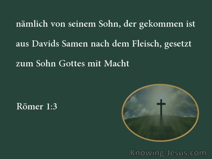 nämlich von seinem Sohn, der gekommen ist aus Davids Samen nach dem Fleisch, gesetzt zum Sohn Gottes mit Macht