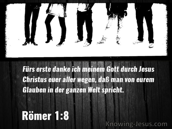 Fürs erste danke ich meinem Gott durch Jesus Christus euer aller wegen, daß man von eurem Glauben in der ganzen Welt spricht.