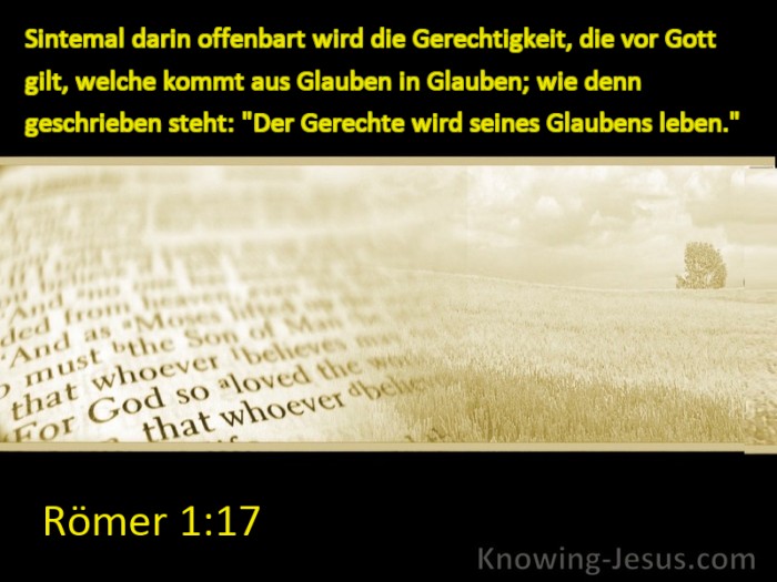 Sintemal darin offenbart wird die Gerechtigkeit, die vor Gott gilt, welche kommt aus Glauben in Glauben; wie denn geschrieben steht: "Der Gerechte wird seines Glaubens leben."