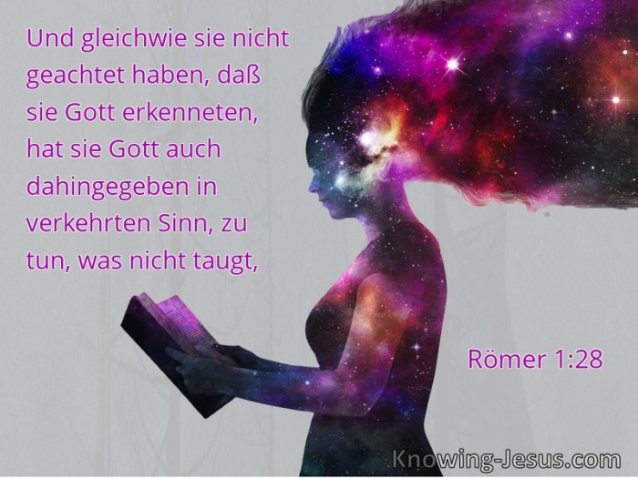 Und gleichwie sie nicht geachtet haben, daß sie Gott erkenneten, hat sie Gott auch dahingegeben in verkehrten Sinn, zu tun, was nicht taugt,