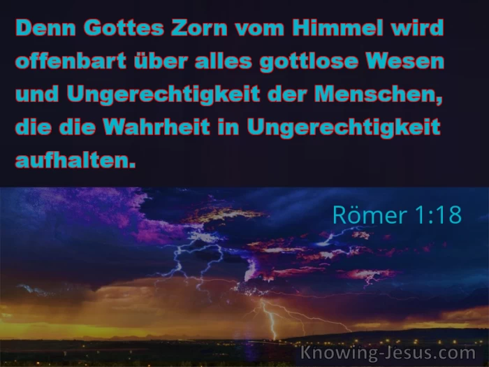 Denn Gottes Zorn vom Himmel wird offenbart über alles gottlose Wesen und Ungerechtigkeit der Menschen, die die Wahrheit in Ungerechtigkeit aufhalten.