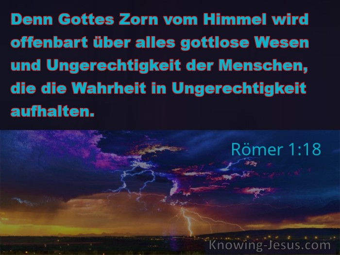 Denn Gottes Zorn vom Himmel wird offenbart über alles gottlose Wesen und Ungerechtigkeit der Menschen, die die Wahrheit in Ungerechtigkeit aufhalten.