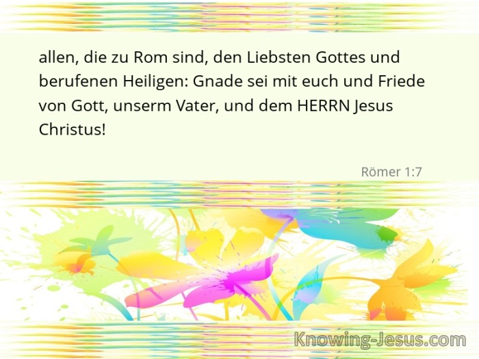 allen, die zu Rom sind, den Liebsten Gottes und berufenen Heiligen: Gnade sei mit euch und Friede von Gott, unserm Vater, und dem HERRN Jesus Christus!