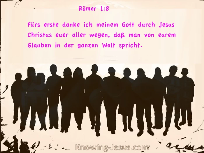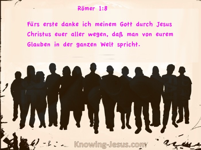 Fürs erste danke ich meinem Gott durch Jesus Christus euer aller wegen, daß man von eurem Glauben in der ganzen Welt spricht.