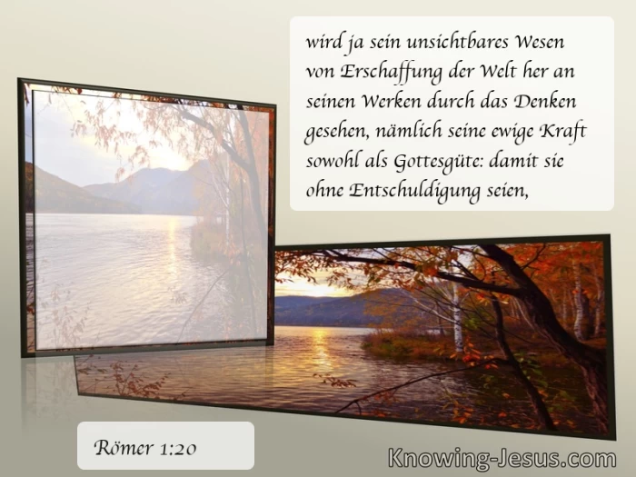 wird ja sein unsichtbares Wesen von Erschaffung der Welt her an seinen Werken durch das Denken gesehen, nämlich seine ewige Kraft sowohl als Gottesgüte: damit sie ohne Entschuldigung seien,