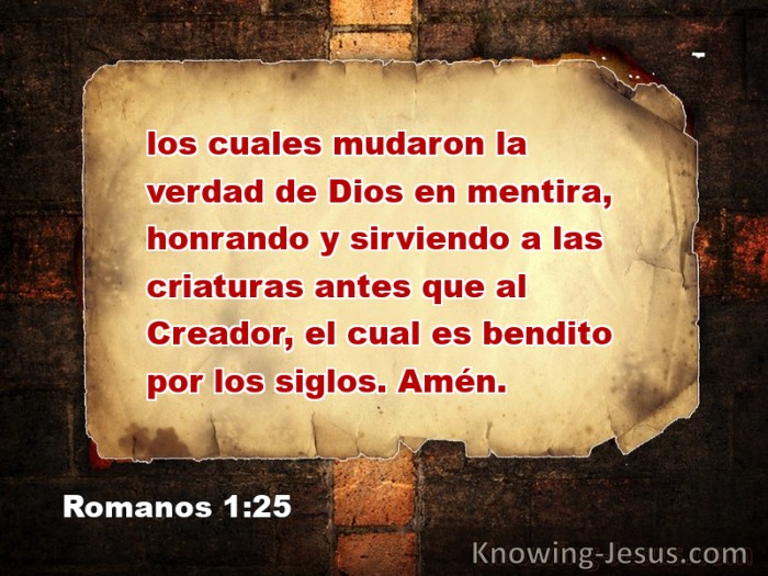los cuales mudaron la verdad de Dios en mentira, honrando y sirviendo a las criaturas antes que al Creador, el cual es bendito por los siglos. Amén.