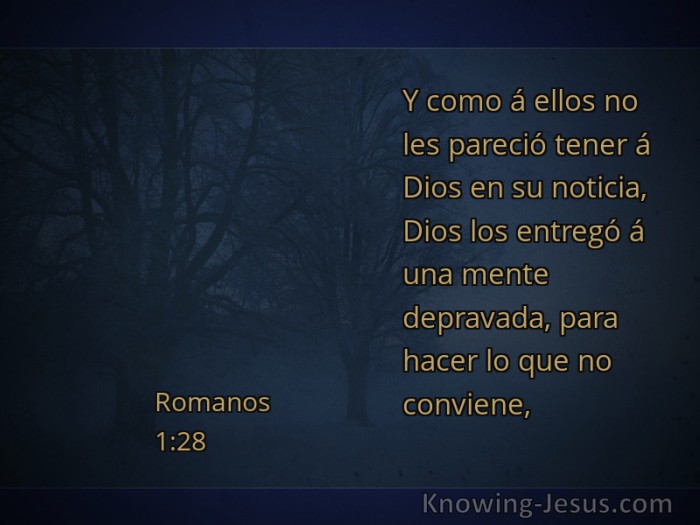 Y del mismo modo también los hombres, dejando el uso natural de las mujeres, se encendieron en sus concupiscencias los unos con los otros, cometiendo cosas nefandas hombres con hombres, y recibiendo en sí mismos la recompensa que convino á su extravío. Y como á ellos no les pareció tener á Dios en su noticia, Dios los entregó á una mente depravada, para hacer lo que no conviene,