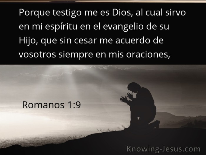 Porque testigo me es Dios, al cual sirvo en mi espíritu en el evangelio de su Hijo, que sin cesar me acuerdo de vosotros siempre en mis oraciones,