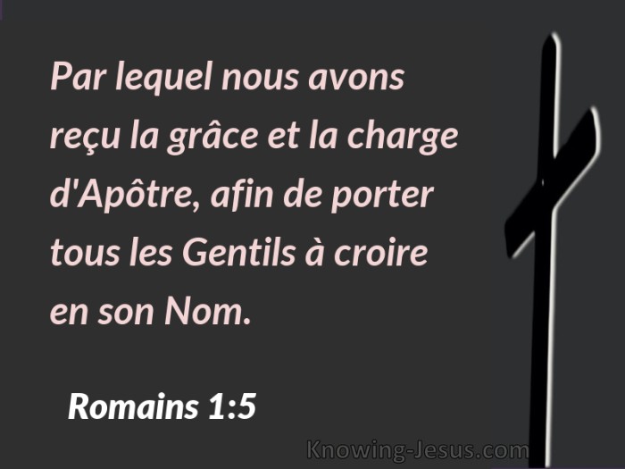 Par lequel nous avons reçu la grâce et la charge d'Apôtre, afin de porter tous les Gentils à croire en son Nom.