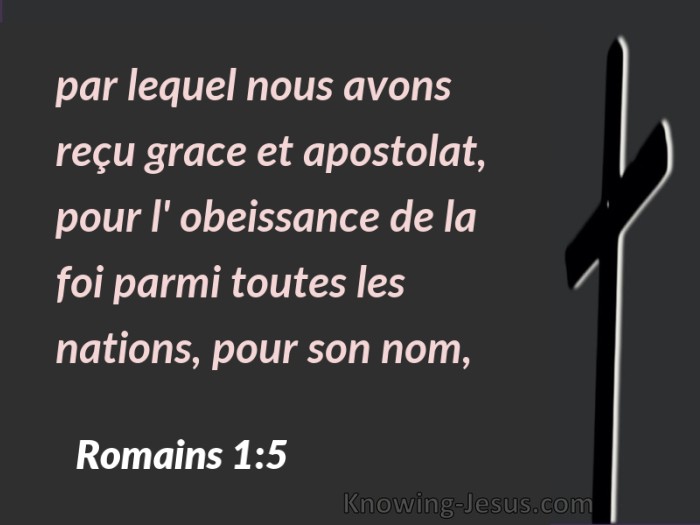 par lequel nous avons reçu grace et apostolat, pour l' obeissance de la foi parmi toutes les nations, pour son nom,