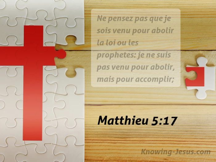 Ne pensez pas que je sois venu pour abolir la loi ou les prophetes: je ne suis pas venu pour abolir, mais pour accomplir;