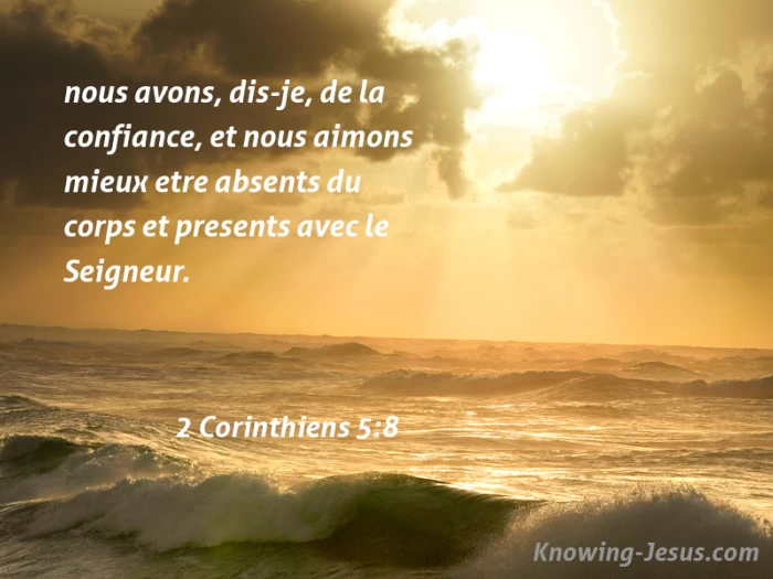 Nous avons donc toujours confiance, et nous savons qu'etant presents dans le corps, nous sommes absents du Seigneur,