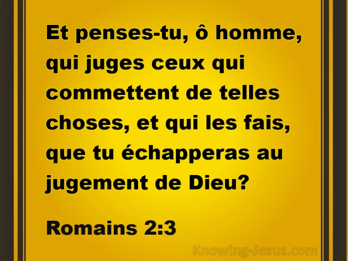 Et penses-tu, ô homme, qui juges ceux qui commettent de telles choses, et qui les fais, que tu échapperas au jugement de Dieu?