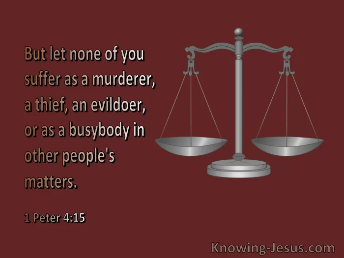 Mais que nul de vous ne souffre comme meurtrier ou voleur, ou comme faisant le mal, ou s'ingerant dans les affaires d'autrui; mais si quelqu'un souffre comme chretien, qu'il n'en ait pas honte, mais qu'il glorifie Dieu en ce nom. Car le temps est venu de commencer le jugement par la maison de Dieu; mais s'il commence premierement par nous, quelle sera la fin de ceux qui n'obeissent pas à l'evangile de Dieu?