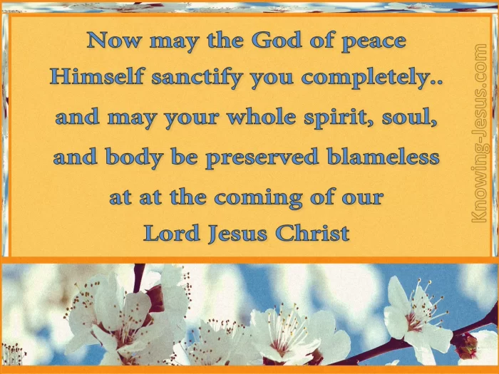 Or le Dieu de paix vous veuille sanctifier entièrement; et faire que votre esprit entier, et l'âme et le corps soient conservés sans reproche en la venue de notre Seigneur Jésus-Christ. Celui qui vous appelle est fidèle, c'est pourquoi il fera ces choses [en vous].