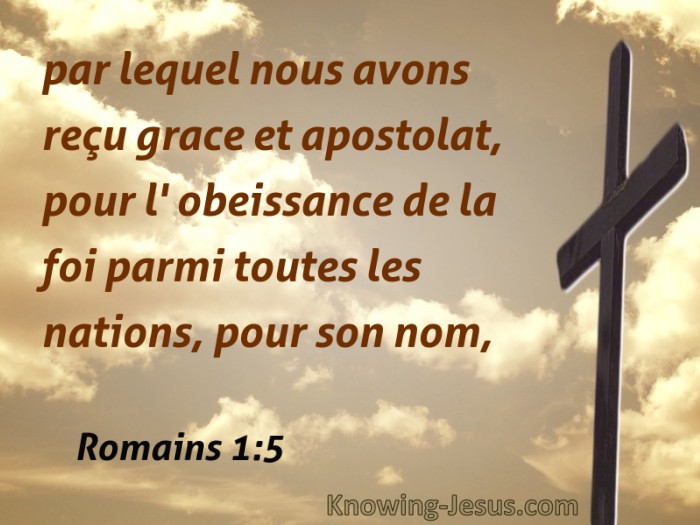 par lequel nous avons reçu grace et apostolat, pour l' obeissance de la foi parmi toutes les nations, pour son nom,