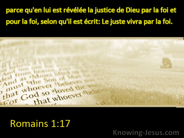 parce qu'en lui est révélée la justice de Dieu par la foi et pour la foi, selon qu'il est écrit: Le juste vivra par la foi.