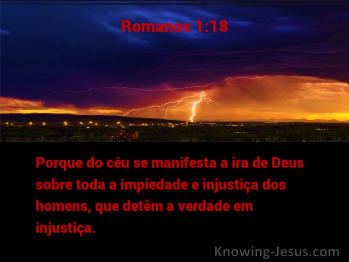 Porque do céu se manifesta a ira de Deus sobre toda a impiedade e injustiça dos homens, que detêm a verdade em injustiça. Porquanto o que de Deus se pode conhecer neles se manifesta, porque Deus lho manifestou. Porque as suas coisas invisíveis, desde a criação do mundo, tanto o seu eterno poder, como a sua divindade, se entendem, e claramente se vêem pelas coisas que estão criadas, para que eles fiquem inescusáveis;