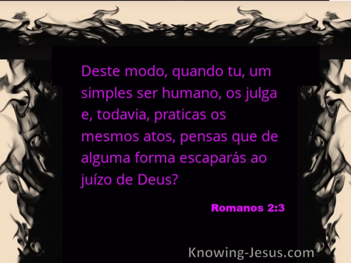 Deste modo, quando tu, um simples ser humano, os julga e, todavia, praticas os mesmos atos, pensas que de alguma forma escaparás ao juízo de Deus?