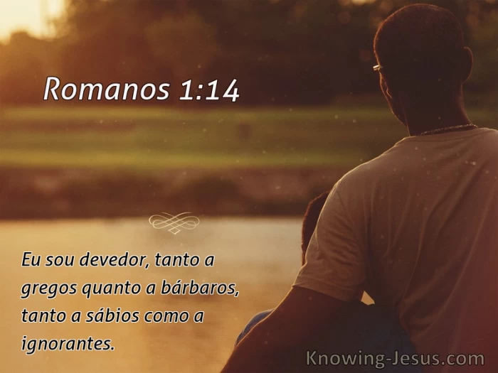 E não desejo, irmãos, que desconheçais, que por muitas vezes planejei visitar-vos, contudo, tenho sido impedido até esse momento. Meu objetivo é colher algum fruto espiritual entre vós, assim como tenho alcançado entre os gentios. Eu sou devedor, tanto a gregos quanto a bárbaros, tanto a sábios como a ignorantes. De modo que, em tudo o que depender de mim, estou preparado para anunciar o Evangelho também a vós que estais em Roma. O tema da carta: a justiça pela fé
