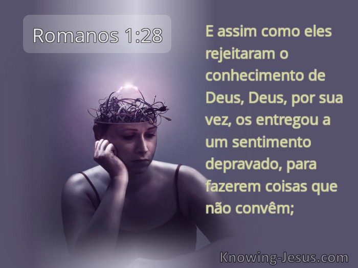 Pelo que Deus os entregou a paixões infames. Porque até as suas mulheres mudaram o uso natural no que é contrário à natureza; semelhantemente, também os varões, deixando o uso natural da mulher, se inflamaram em sua sensualidade uns para como os outros, varão com varão, cometendo torpeza e recebendo em si mesmos a devida recompensa do seu erro. E assim como eles rejeitaram o conhecimento de Deus, Deus, por sua vez, os entregou a um sentimento depravado, para fazerem coisas que não convêm; estando cheios de toda a injustiça, malícia, cobiça, maldade; cheios de inveja, homicídio, contenda, dolo, malignidade; sendo murmuradores, detratores, aborrecedores de Deus, injuriadores, soberbos, presunçosos, inventores de males, desobedientes ao pais; néscios, infiéis nos contratos, sem afeição natural, sem misericórdia;