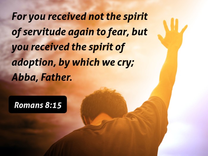 For you received not the spirit of servitude again to fear, but you received the spirit of adoption, by which we cry; Abba, Father.