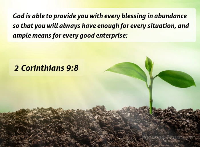 God is able to provide you with every blessing in abundance so that you will always have enough for every situation, and ample means for every good enterprise:
