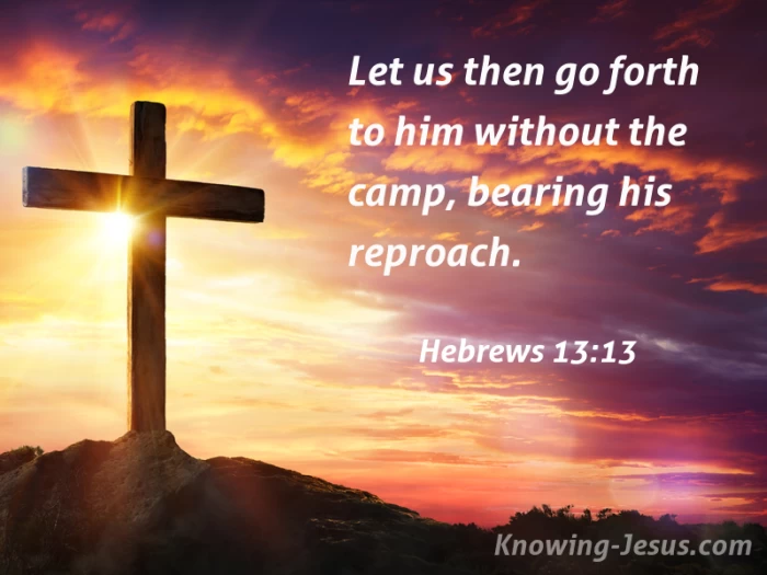 For the bodies of those beasts whose blood is brought into the holy place by the high priest for sin, are burnt without the camp. Wherefore Jesus also, that he might sanctify the people by his own blood, suffered without the gate. Let us then go forth to him without the camp, bearing his reproach.