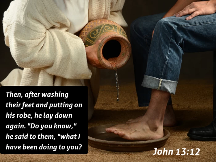 Well, if I have washed your feet, I who am your Lord and Teacher, you are bound to wash one another's feet;