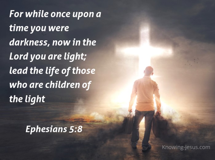 For while once upon a time you were darkness, now in the Lord you are light; lead the life of those who are children of the light (for the fruit of light consists in all that is good and right and true), verifying what pleases the Lord.read more.
