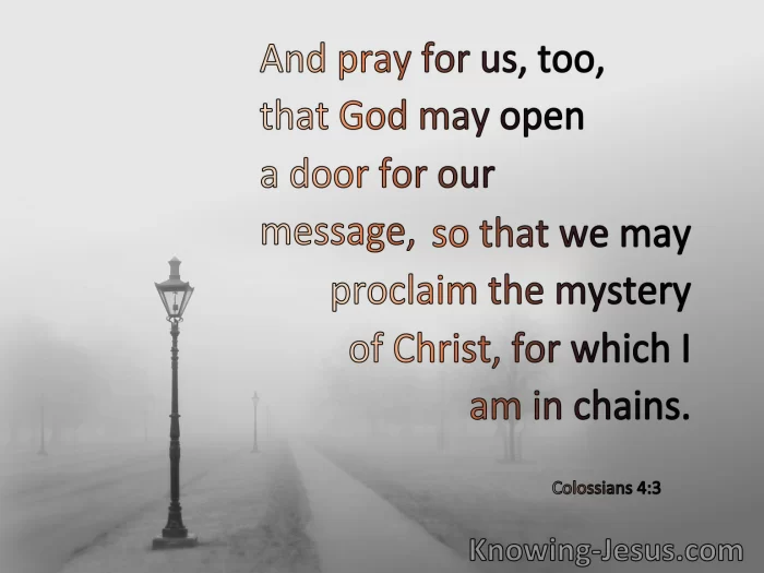 Keep on praying for me, too, that God may open for me a door of utterance to speak the secret truth of Christ, for which I am a prisoner.