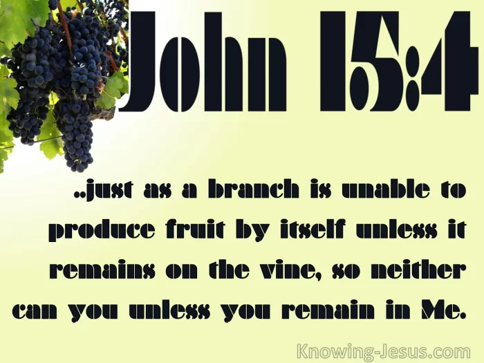 Remain in me, and I will remain in you. Just as the branch cannot bear fruit by itself, unless it remains in the vine, so neither can you unless you remain in me. "I am the vine; you are the branches. The one who remains in me -- and I in him -- bears much fruit, because apart from me you can accomplish nothing. If anyone does not remain in me, he is thrown out like a branch, and dries up; and such branches are gathered up and thrown into the fire, and are burned up. If you remain in me and my words remain in you, ask whatever you want, and it will be done for you. My Father is honored by this, that you bear much fruit and show that you are my disciples.