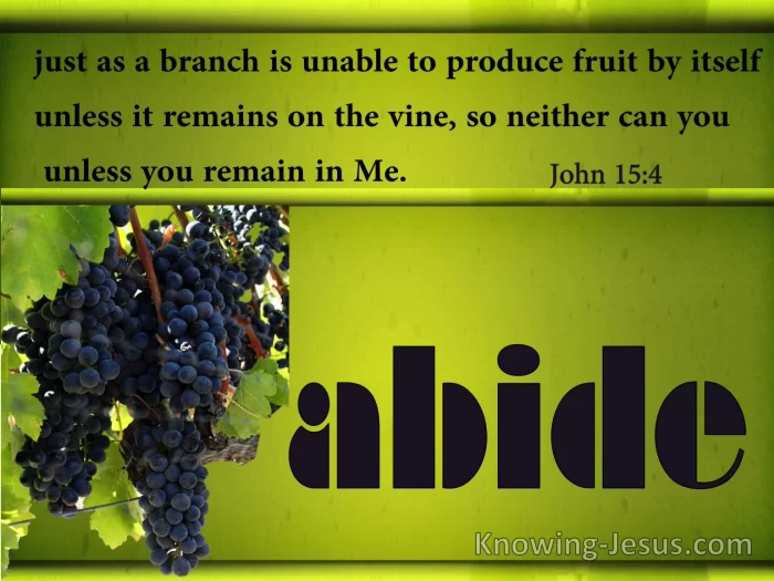 Abide in me, and I in you. As the branch cannot bear fruit by itself, unless it abides in the vine, neither can you, unless you abide in me.
