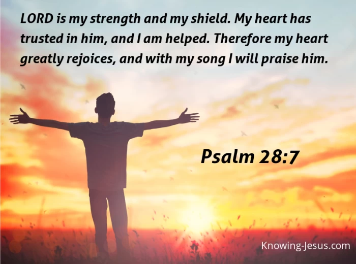 LORD is my strength and my shield. My heart has trusted in him, and I am helped. Therefore my heart greatly rejoices, and with my song I will praise him.