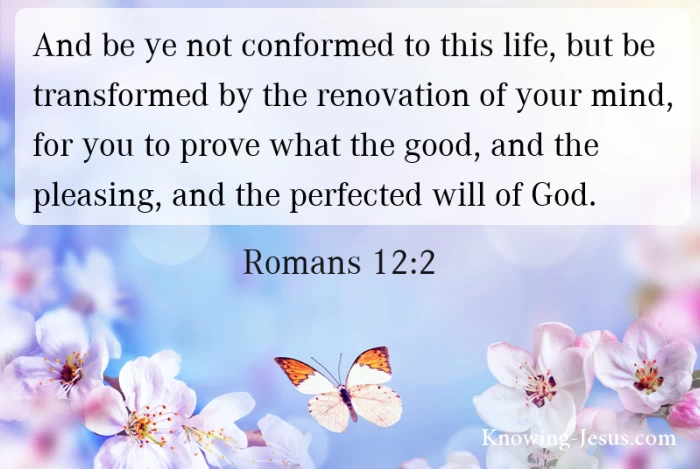 And be ye not conformed to this life, but be transformed by the renovation of your mind, for you to prove what the good, and the pleasing, and the perfected will of God.