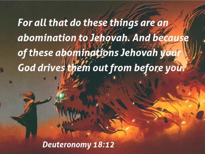 There shall not be found among you anyone who makes his son or his daughter to pass through the fire, or that uses divination, an observer of clouds, or a fortune-teller, or a witch, or a charmer, or a consulter with familiar spirits, or a wizard, or one who calls to the dead. For all that do these things are an abomination to Jehovah. And because of these abominations Jehovah your God drives them out from before you.