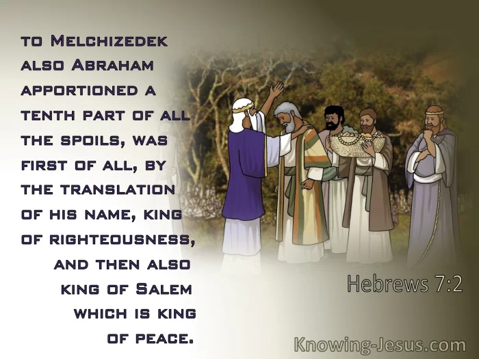 And to whom Abraham gave a tenth part of everything which he had, being first named King of righteousness, and then in addition, King of Salem, that is to say, King of peace;