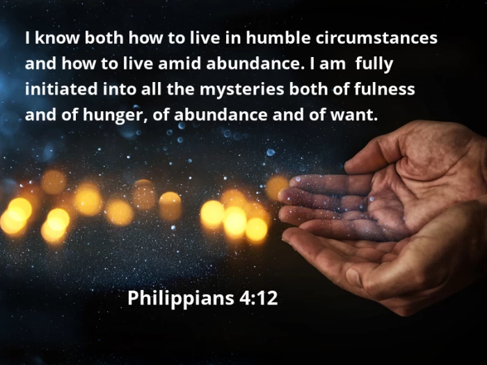 I know both how to live in humble circumstances and how to live amid abundance. I am fully initiated into all the mysteries both of fulness and of hunger, of abundance and of want.
