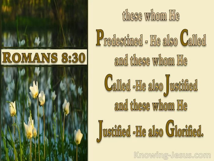 And those whom God destined for this he also called; and those whom he called he also pronounced righteous; and those whom he pronounced righteous he also brought to Glory.