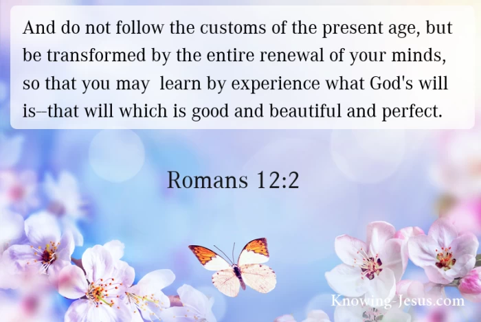 And do not follow the customs of the present age, but be transformed by the entire renewal of your minds, so that you may learn by experience what God's will is--that will which is good and beautiful and perfect.