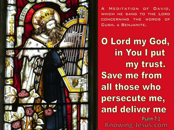 A song of David, which he sang to Jehovah, concerning the words of Cush the Benjamite. O Jehovah my God, in You I put my trust; save me from all who pursue me, and deliver me,