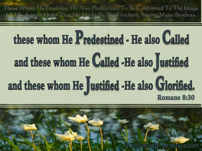 And we are conscious that all things are working together for good to those who have love for God, and have been marked out by his purpose. Because those of whom he had knowledge before they came into existence, were marked out by him to be made like his Son, so that he might be the first among a band of brothers: And those who were marked out by him were named; and those who were named were given righteousness; and to those to whom he gave righteousness, in the same way he gave glory.