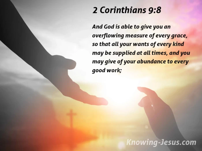 And God is able to give you an overflowing measure of every grace, so that all your wants of every kind may be supplied at all times, and you may give of your abundance to every good work;