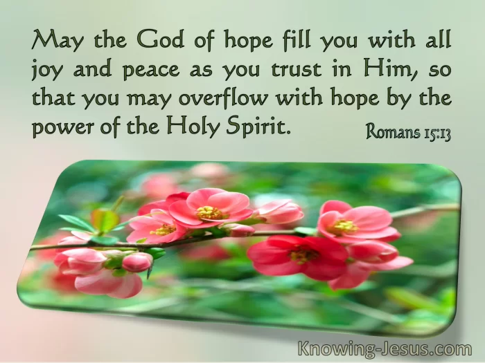 Now the God of hope fill you with all joy and peace in believing, that ye may abound in hope through the power of the holy spirit.