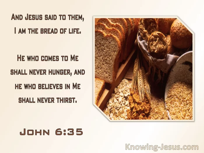 Jesus told them, "I am the bread of life. Whoever comes to me will never become hungry, and whoever believes in me will never become thirsty.