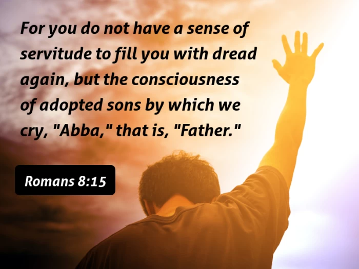 For you do not have a sense of servitude to fill you with dread again, but the consciousness of adopted sons by which we cry, "Abba," that is, "Father."